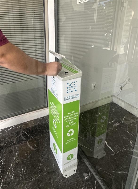 Πιο αναλυτικά, τοποθετήθηκαν κάδοι στην κεντρική είσοδο της εταιρείας και στον εξωτερικό χώρο του 6ου ορόφου και πραγματοποιήθηκε ενημέρωση των στελεχών της εταιρείας σχετικά με την ορθή χρήση των κάδων και για το πρόβλημα που δημιουργούν τα αποτσίγαρα ως πηγή περιβαλλοντικής ρύπανσης.